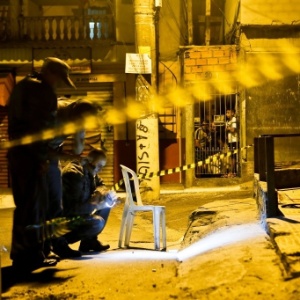 Peritos examinam local onde quatro pessoas foram baleadas na rua Alberto Buriti, na zona norte da capital paulista. Três não resistiram aos ferimentos e morreram.